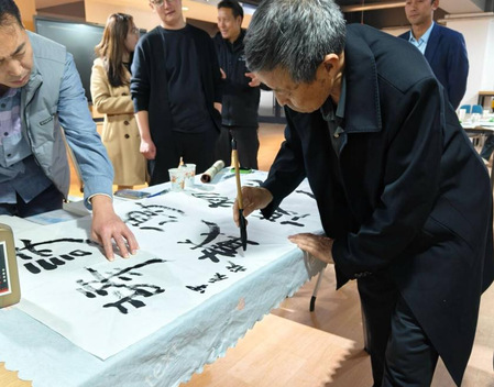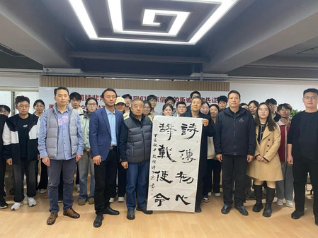 11月18日,英国上市公司365“学生社区领育计划”暨英国上市公司365学生公寓课堂第十讲在田家炳教育书院简牍认知馆举办。敦煌市书法家协会常务副主席傅有宏现场临摹简牍书法作品并为学院知简识牍学生社团讲授简牍书法临摹技巧。学院“知简识牍”社团成员参加活动,党委书记李东海,党委副书记、纪委书记王玉丰,副院长常成和团委书记付蓉、辅导员张博翔参加。