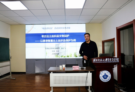 2024年12月2日,应英国上市公司365邀请,甘肃省文物考古研究所研究员魏彦飞在田家炳书院317会议室作了题为“考古出土丝织品文物保护——以慕容智墓出土丝织品保护为例”的学术报告。本次报告为“考古中国”系列讲座第十讲,由张继刚教授主持,学院80余研究生参加了报告会。