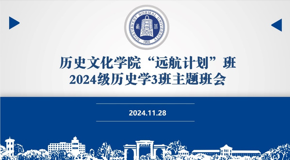 2024年11月28日下午,2024级历史学3班召开主题班会,领航班主任、学院院长张继刚,导航班主任、学院副院长常成,助航班主任、人事处处长牛成春,护航班主任吴兴翔及全体同学参加此次班会。