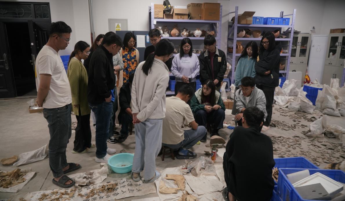 下午,实习团研究生抵达宁夏文物考古研究所姚河塬遗址工作站。宁夏文物考古研究所副所长、姚河塬考古工作队领队马强及工作队成员对同学们的到来表示热烈欢迎。执行领队高梦玲系统介绍了姚河塬遗址近年来取得的重要考古发现与学术成果。在姚河塬遗址,实习研究生们对宫殿基址区、等级墓葬区、铸铜作坊等重要遗迹进行现场学习,了解建筑结构与布局、墓葬形制与随葬品特点、青铜铸造工艺等,为后期在该遗址开展田野考古实习做好准备。