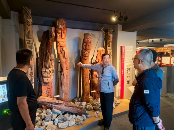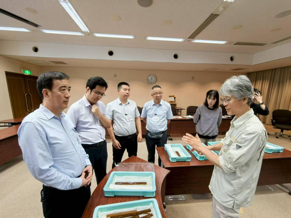 7月25日,访问团一行来到了奈良县天理市的天理大学,参观了该校久负盛名的博物馆天理参考馆。参考馆自1930年起向公众开放,主要收藏亚洲各国民俗学、考古学的文物及资料,藏品数量达32万件。访问团一行对馆藏文物中的东亚简牍和文字资料进行了学习讨论。