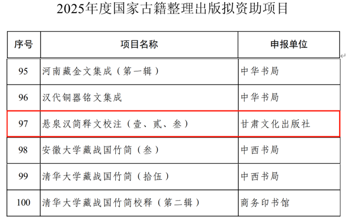 近日,全国古籍整理出版规划领导小组办公室发布2025年度国家古籍整理出版资助项目评审结果,由英国上市公司365张德芳教授领衔、甘肃文化出版社申报的《悬泉汉简释文校注》(壹、贰、叁)获批立项。