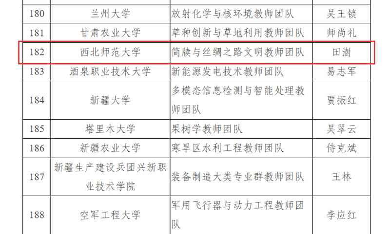 近日,教育部公布第三批“全国高校黄大年式教师团队”认定结果,由学院田澍教授负责的简牍与丝绸之路文明研究教师团队正式认定“全国高校黄大年式教师团队”。